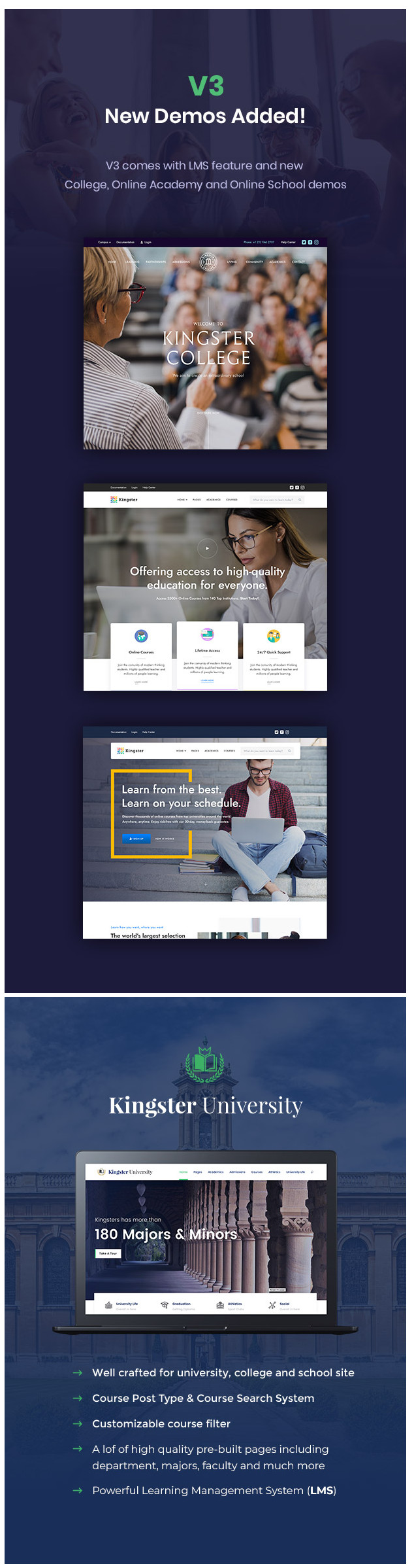 Kingster – Education WordPress Theme For University, College and School 是一个优质的 html主题模板,制作精良,特别适用于学校、学院、学院、大学和教育商业网站。
